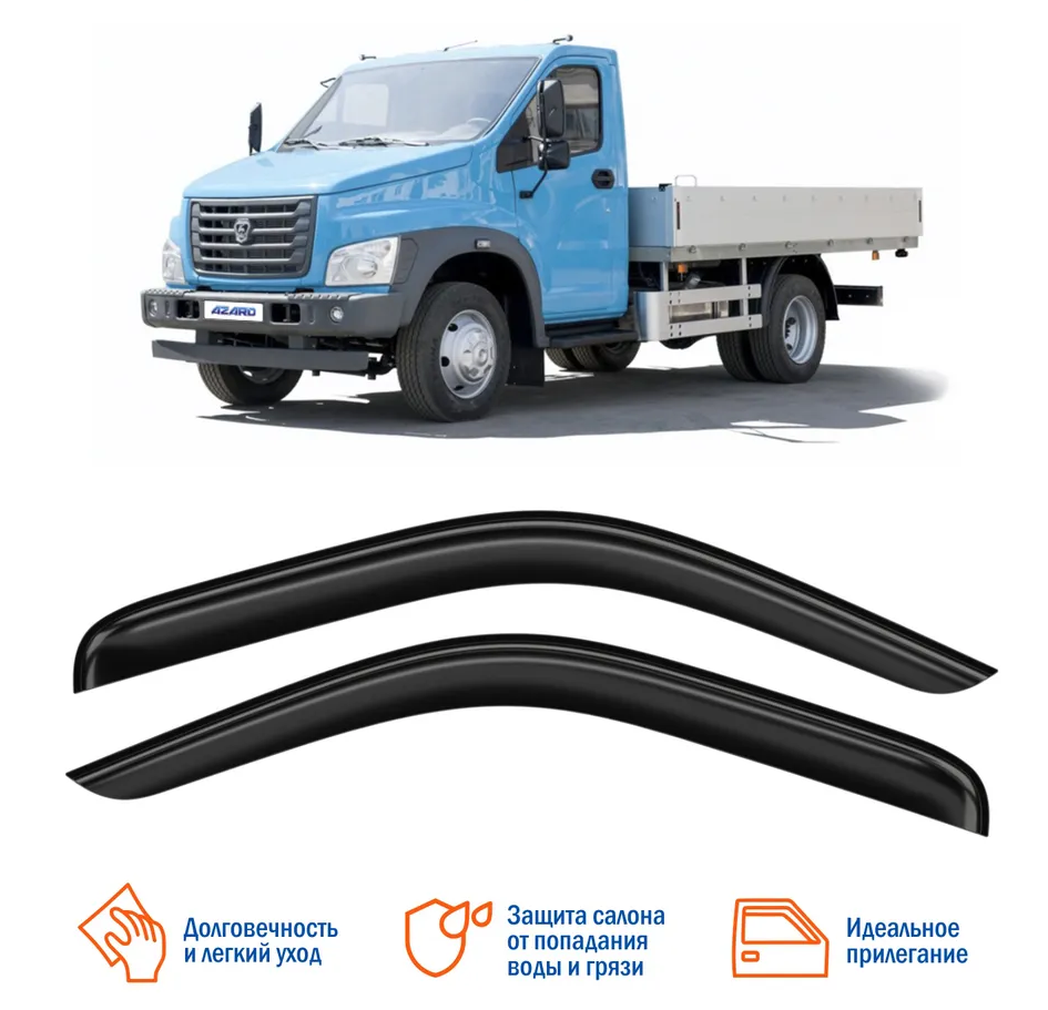 Дефлекторы окон ГАЗОН Next 2013-н.в./накладные/ скотч /к-т 2 шт./ AZARD