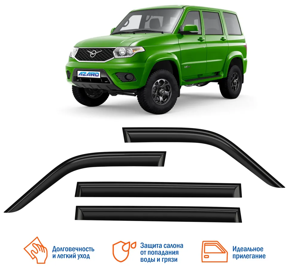 Дефлекторы окон UAZ PATRIOT / ВНЕДОРОЖНИК /НАКЛАДНЫЕ/к-т 4 шт./AZARD