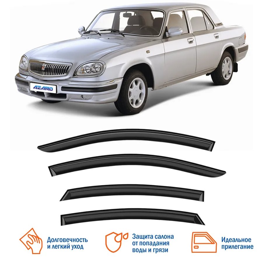 Дефлекторы окон ВОЛГА /НАКЛАДНЫЕ/к-т 4 шт./ AZARD