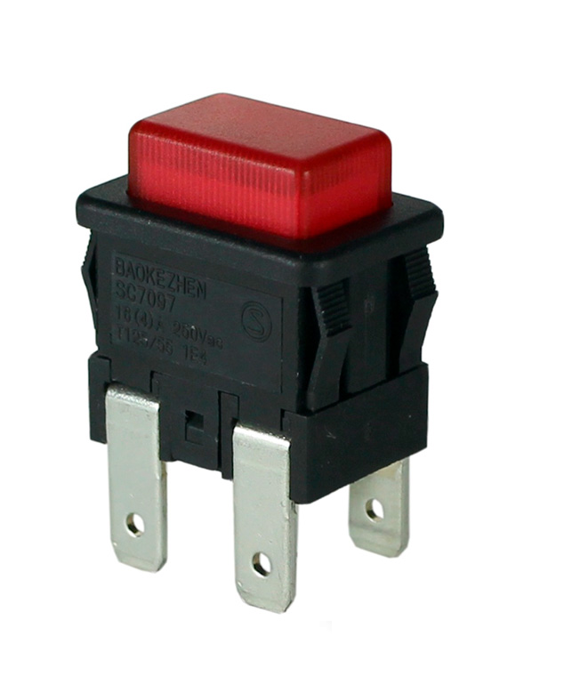 Тумблер нажимной прямоугольный с фикс (красный) 4-ножки
