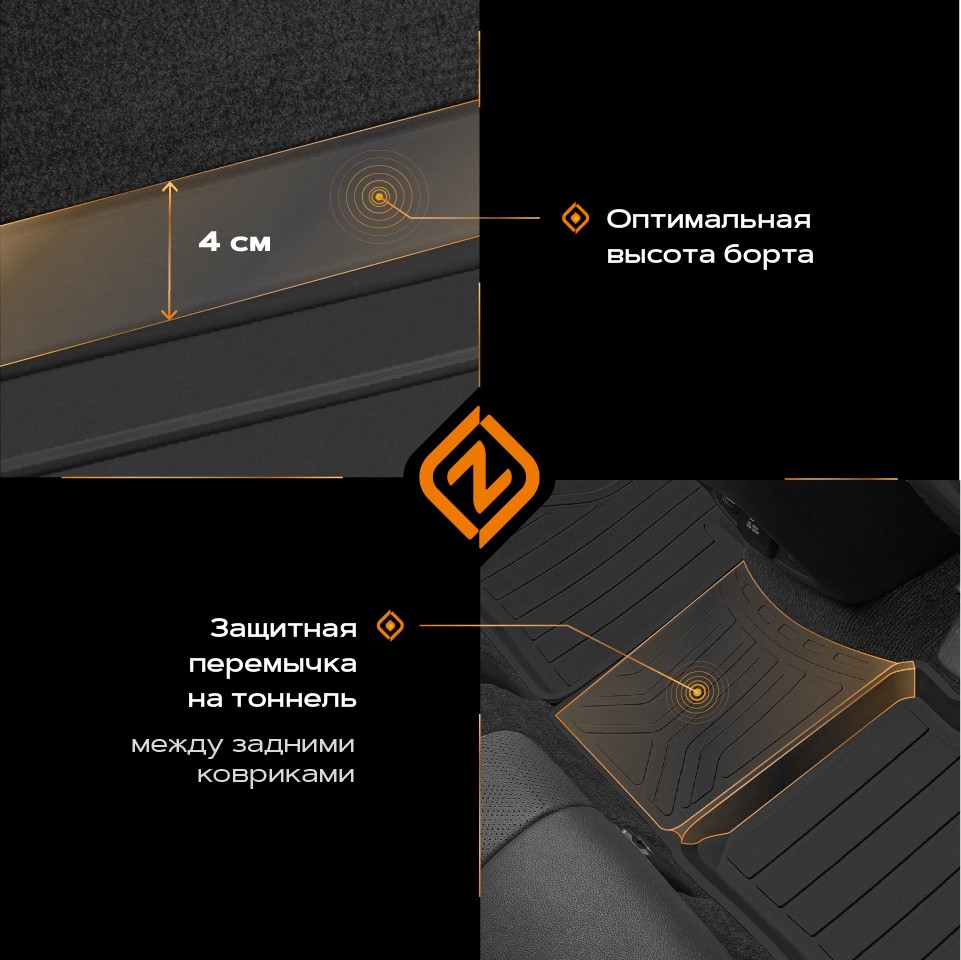 Коврик салонный резиновый LADA Largus (12-21) 7-ми местный (Борт 4см) REZKON