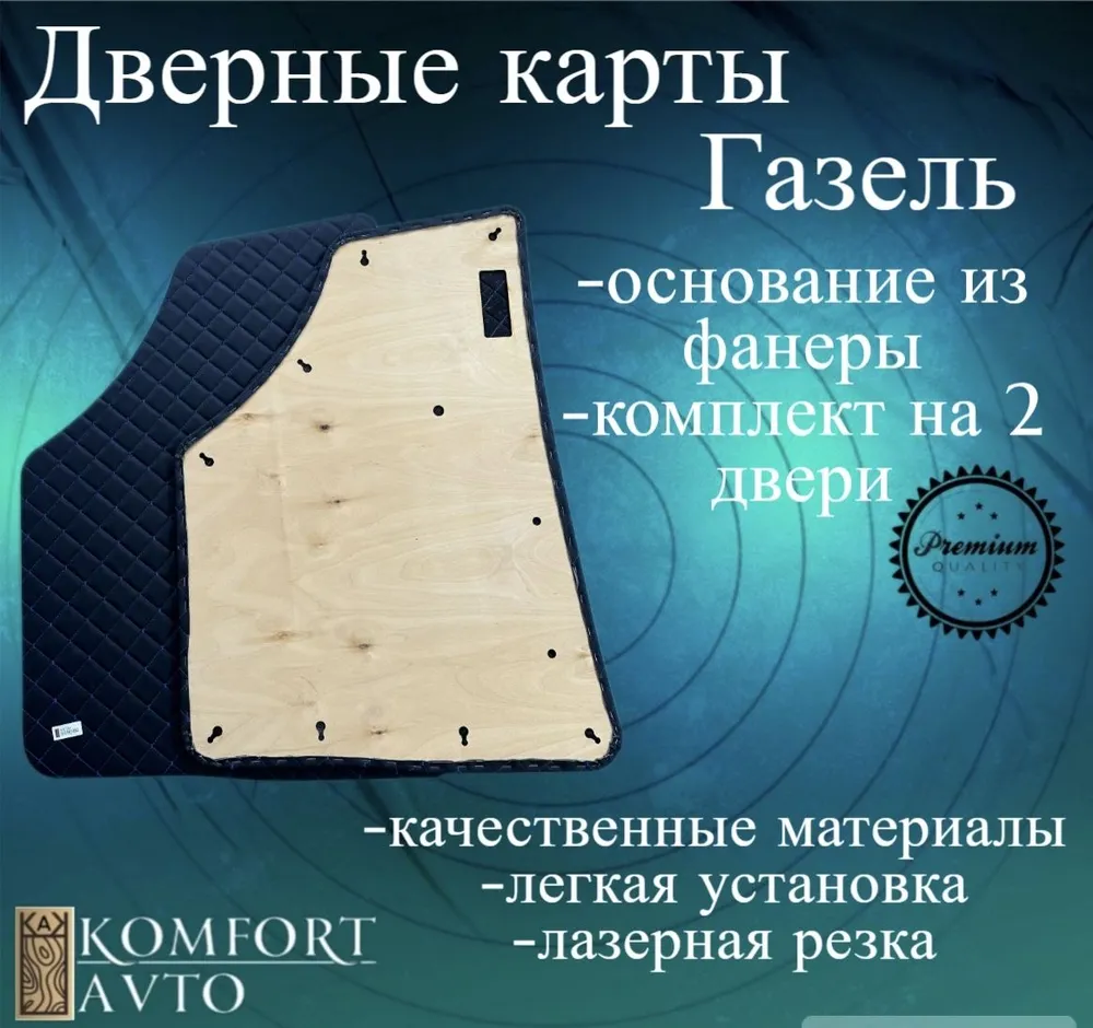 Обивка двери Газель РОМБ черная нить (кожзам на картоне) (к/т=2шт)